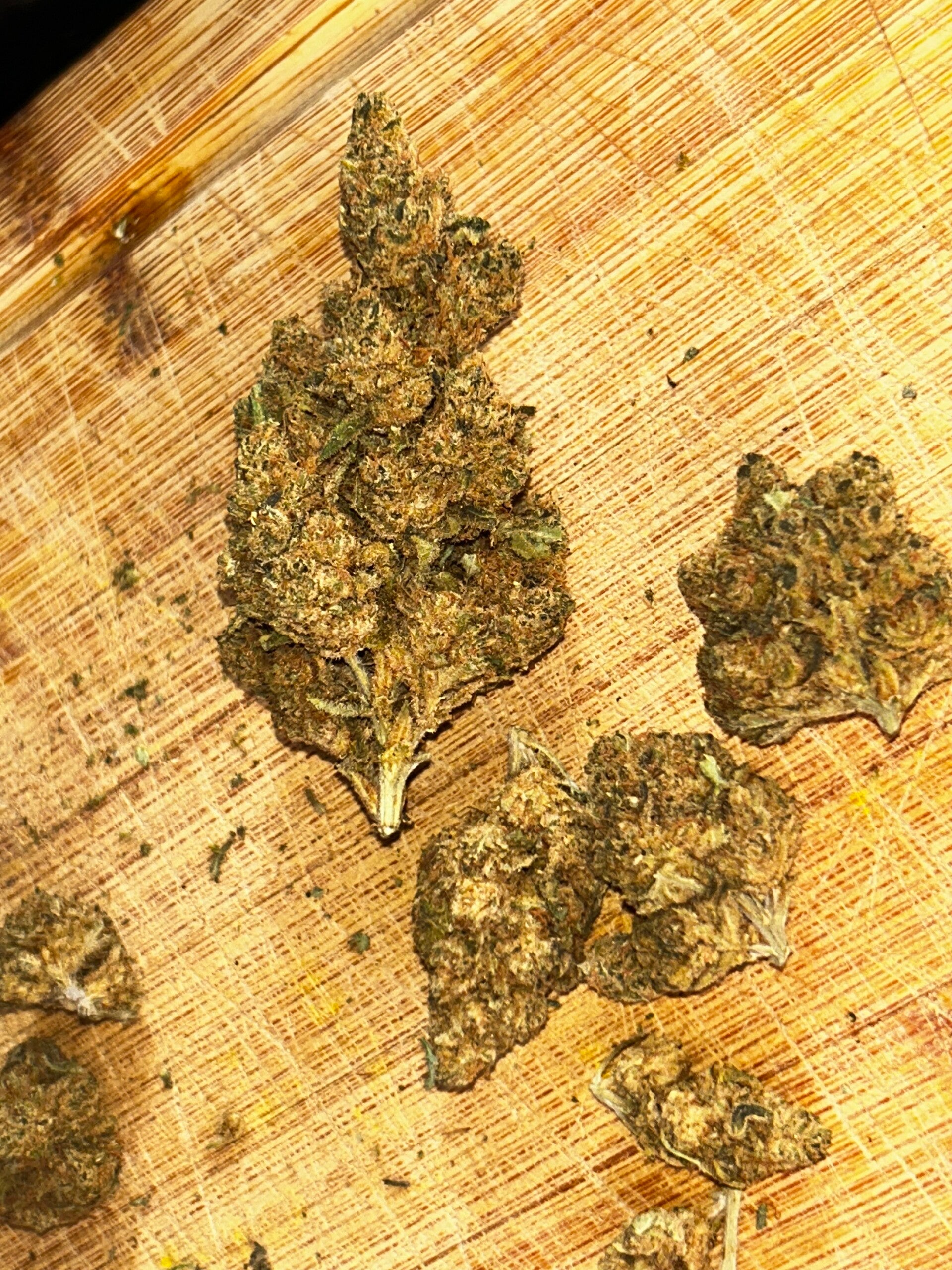 - Un toucher gras, dû à la résine de cannabis dans la fleur